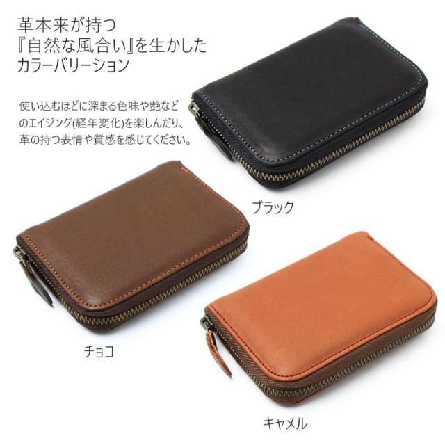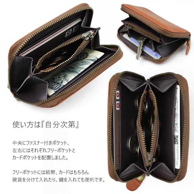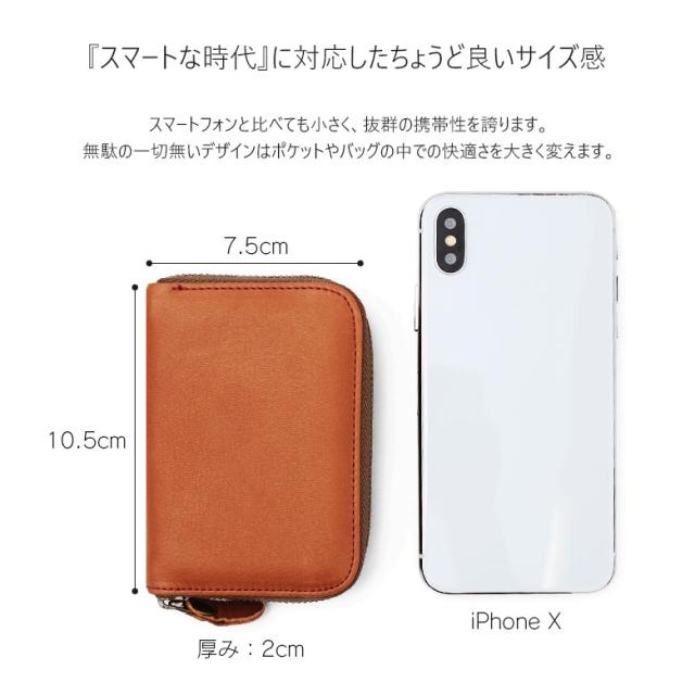『気軽に持ち歩ける』 携帯性を追求した小銭入れです。 ポケットやカバンの中で邪魔にならず、気軽に持ち歩ける。 硬貨はもちろん、紙幣やカードもしっかり入れることができる収納力を実現しました。 『スマートな時代』に対応したちょうど良いサイズ感 スマートフォンと比べても小さく、抜群の携帯性を誇ります。 無駄の一切無いデザインはポケットやバッグの中での快適さを大きく変えます。 使い方は『自分次第』 中央にファスナー付きポケット、左右にはそれぞれフリーポケットとカードポケットを配置しました。 フリーポケットには紙幣、カードはもちろん硬貨を分けて入れたり、鍵を入れても便利です。 ICカードが入る『背面ポケット』 背面には便利なカードポケット。 サッと取り出せるのでICカードや定期券の収納に最適です。 デザインのポイントに『カラーステッチ』 カラーステッチが彩り鮮やかで絶妙のアクセントになっています レザーに映える丁寧な縫製は耐久性も抜群です。
