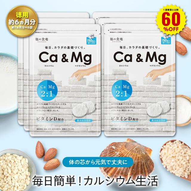 1袋単価比較で60%O!【徳用/約6ヵ月分】カルシウム&マグネシウム黄金比 サプリ ビタミンD ホタテ 貝殻