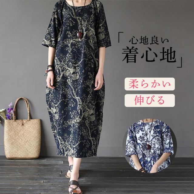 ワンピース レディース 大きいサイズ 売れ筋 半袖 麻混 涼しい 大人 女 ゆったり カジュアル おしゃれ ロング丈 定番 お出