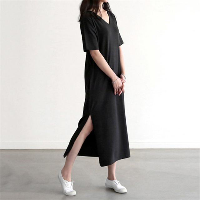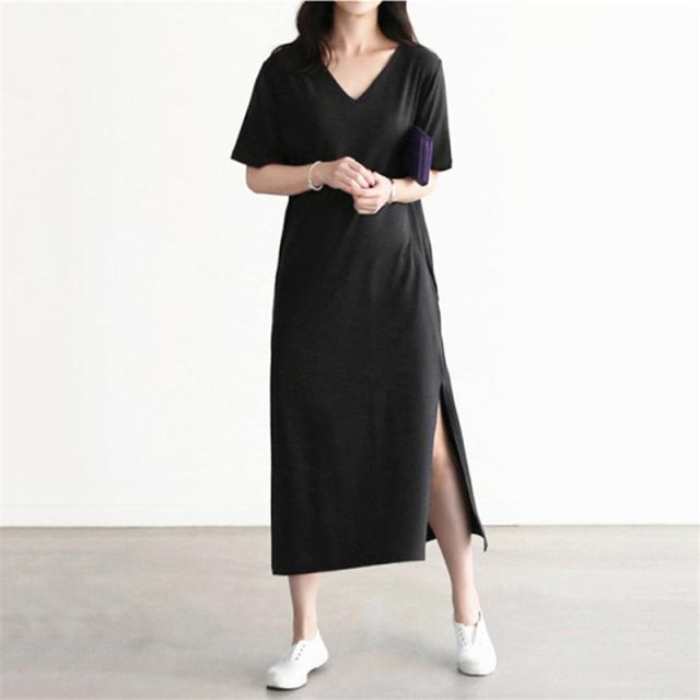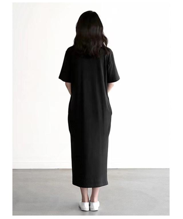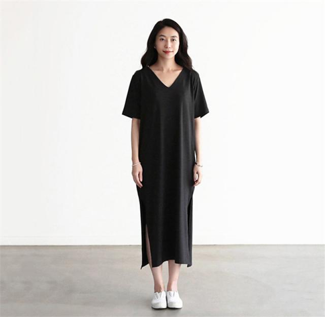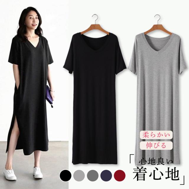 【キーワード】大きいサイズ ワンピース レディース 半袖 七分袖 ロング丈 UV対策/接触冷感 ひんやり カジュアル Vネック スリット 部屋着 夏服 30代 40代 50代 体型カバー 着痩せ ストレッチ マタニティ 妊婦服