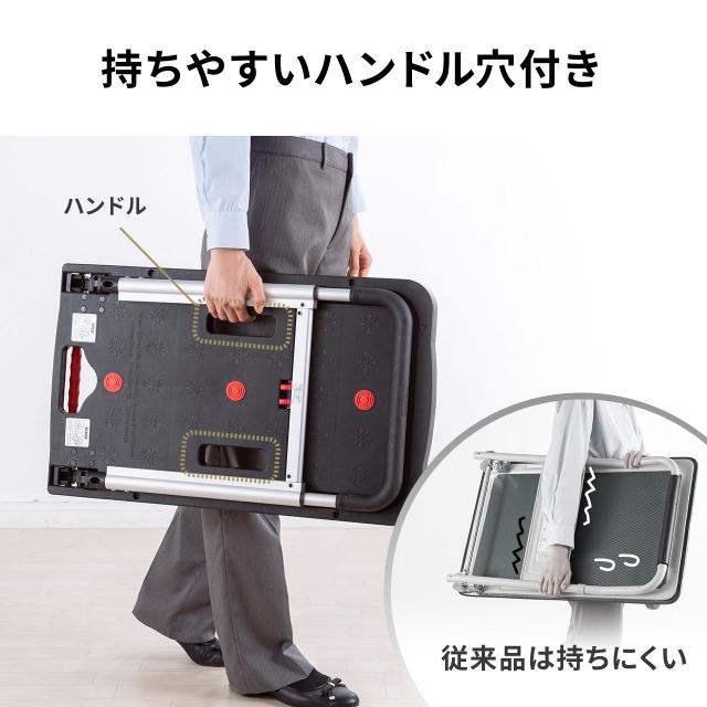 ●車輪まで完全に折り畳むことができる取っ手付きの台車です。●折り畳めば約8cmの厚さになり持ち運びにも便利です。