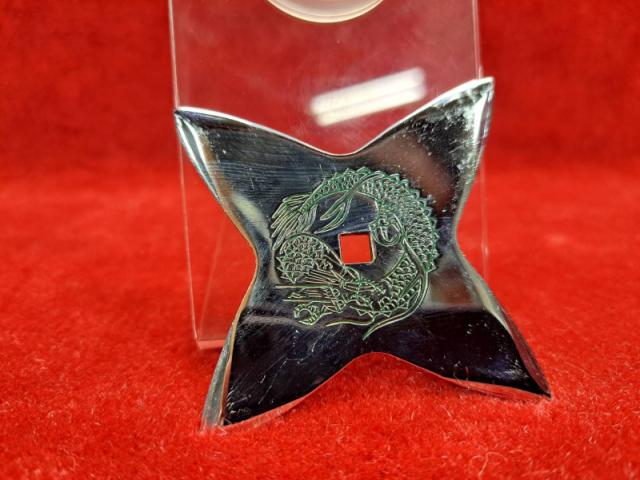 金属製手裏剣にクロームメッキをしたおもちゃ。