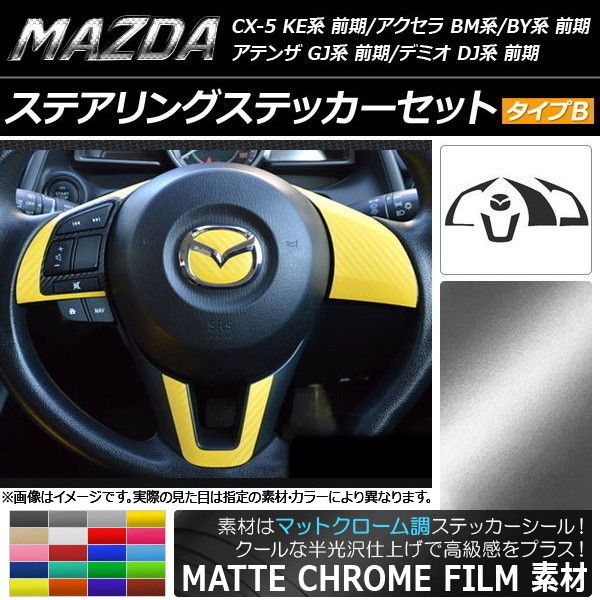 ステアリングステッカーセット マットクローム調 タイプB マツダ CX-5 KE系、アクセラ BM系/BY系、アテンザ GJ系 選べる20カラー AP-MTCR440
