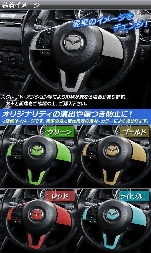 ステアリングステッカーセット マットクローム調 タイプB マツダ CX-5 KE系、アクセラ BM系/BY系、アテンザ GJ系 選べる20カラー AP-MTCR440 カラー: ブラック ホワイト レッド ブルー イエロー グリーン オレンジ パープル ピンク ネイビー ブラウン ボルドー ゴールド シルバー ガンメタリック マゼンタ ライトグリーン ライトブルー ライトゴールド シアン