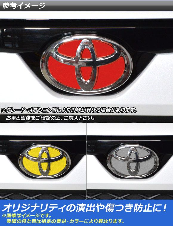 エンブレムステッカー マットクローム調 トヨタ汎用タイプ フロント/リアどちらかに使用可能 選べる20カラー AP-MTCR892 カラー: ブラック ホワイト レッド ブルー イエロー グリーン オレンジ パープル ピンク ネイビー ブラウン ボルドー ゴールド シルバー ガンメタリック マゼンタ ライトグリーン ライトブルー ライトゴールド シアン