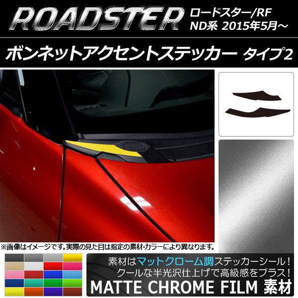ボンネットアクセントステッカー マットクローム調 タイプ2 マツダ ロードスター/ロードスターRF ND系 選べる20カラー 入数:1セット(2枚) AP-MTCR2408