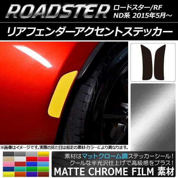 リアフェンダーアクセントステッカー マットクローム調 マツダ ロードスター/ロードスターRF ND系 選べる20カラー 入数:1セット(2枚) AP-MTCR2431 カラー: ブラック ホワイト レッド ブルー イエロー グリーン オレンジ パープル ピンク ネイビー ブラウン ボルドー ゴールド シルバー ガンメタリック マゼンタ ライトグリーン ライトブルー ライトゴールド シアン
