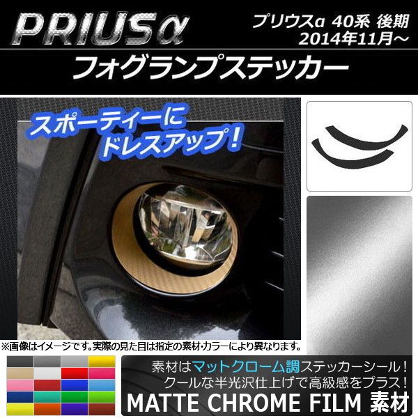 フォグランプステッカー マットクローム調 トヨタ プリウスα ZVW40/ZVW41 後期 2014年11月〜 選べる20カラー 入数:1セット(2枚) AP-MTCR244