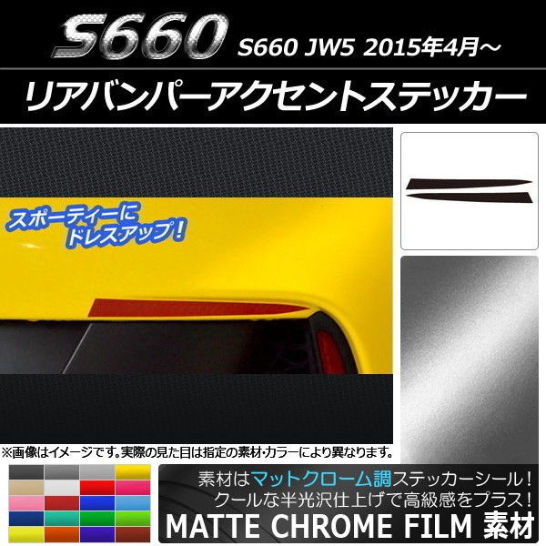 リアバンパーアクセントステッカー マットクローム調 ホンダ S660 JW5 2015年04月〜 選べる20カラー 入数:1セット(2枚) AP-MTCR1972