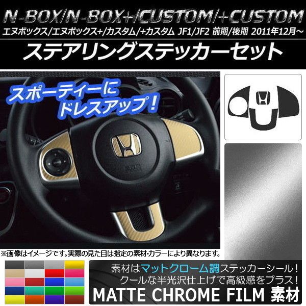 ステアリングステッカーセット マットクローム調 ホンダ N-BOX/+/カスタム/+カスタム JF1/JF2 前期/後期 2011年12月〜 選べる20カラー AP-MTCR580