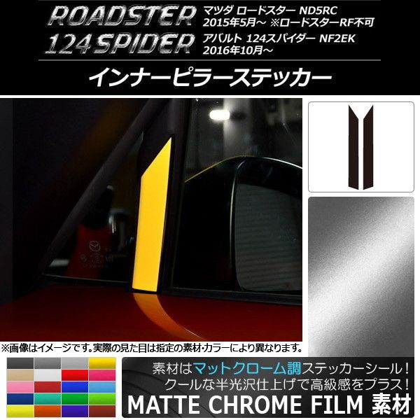 インナーピラーステッカー マットクローム調 マツダ/アバルト ロードスター/124スパイダー ND5RC/NF2EK 選べる20カラー 入数:1セット(2枚) AP-MTCR2460