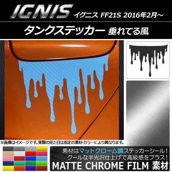 タンクステッカー マットクローム調 垂れてる風 スズキ イグニス FF21S 2016年2月〜 選べる20カラー AP-MTCR1627