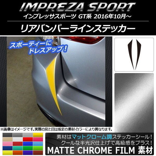 リアバンパーラインステッカー マットクローム調 スバル インプレッサスポーツ GT系 2016年10月〜 選べる20カラー 入数:1セット(2枚) AP-MTCR2094