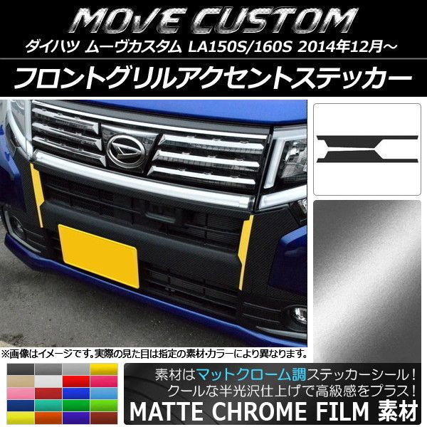 フロントグリルアクセントステッカー マットクローム調 ダイハツ ムーヴカスタム LA150S/LA160S 選べる20カラー 入数:1セット(2枚) AP-MTCR1227