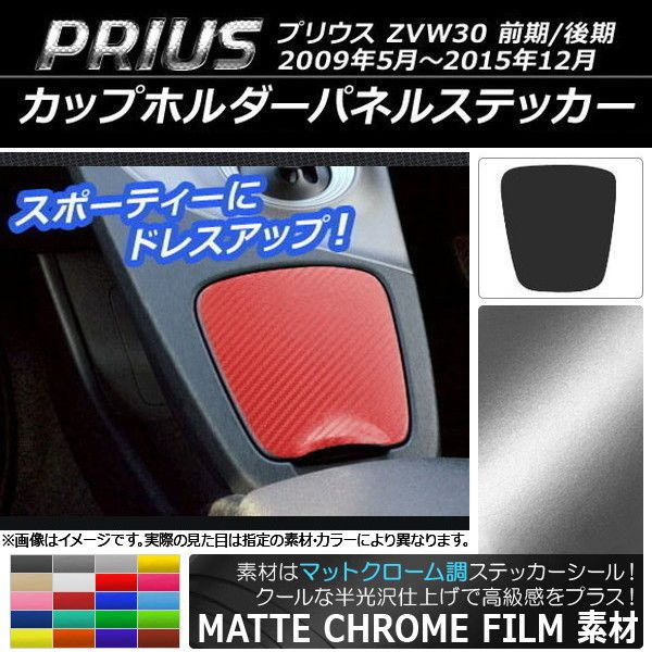 カップホルダーパネルステッカー マットクローム調 トヨタ プリウス ZVW30 前期/後期 2009年05月〜2015年12月 選べる20カラー AP-MTCR176