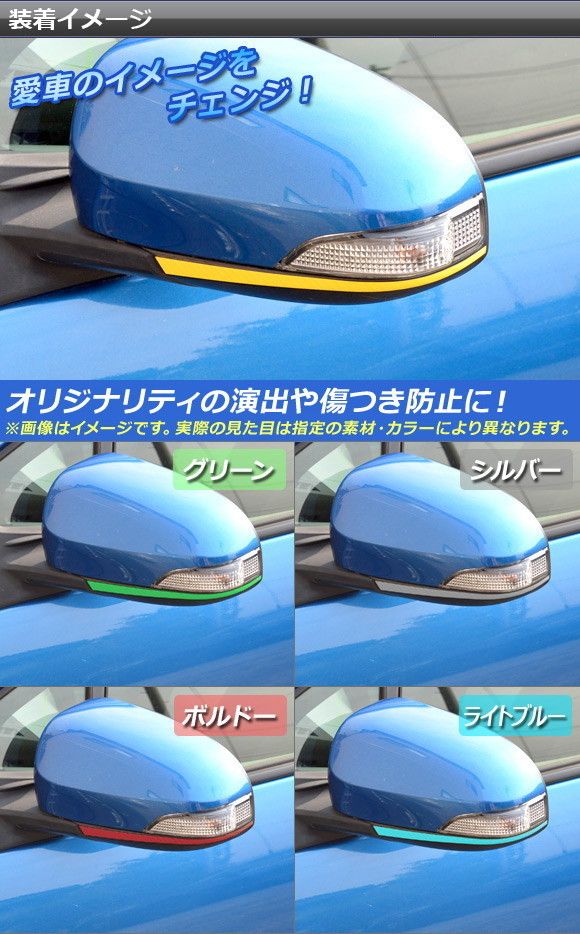 ドアミラーアンダーステッカー マットクローム調 トヨタ アクア NHP10 前期/中期 2011年12月〜2017年05月 選べる20カラー 入数:1セット(左右) AP-MTCR134 カラー: ブラック ホワイト レッド ブルー イエロー グリーン オレンジ パープル ピンク ネイビー ブラウン ボルドー ゴールド シルバー ガンメタリック マゼンタ ライトグリーン ライトブルー ライトゴールド シアン