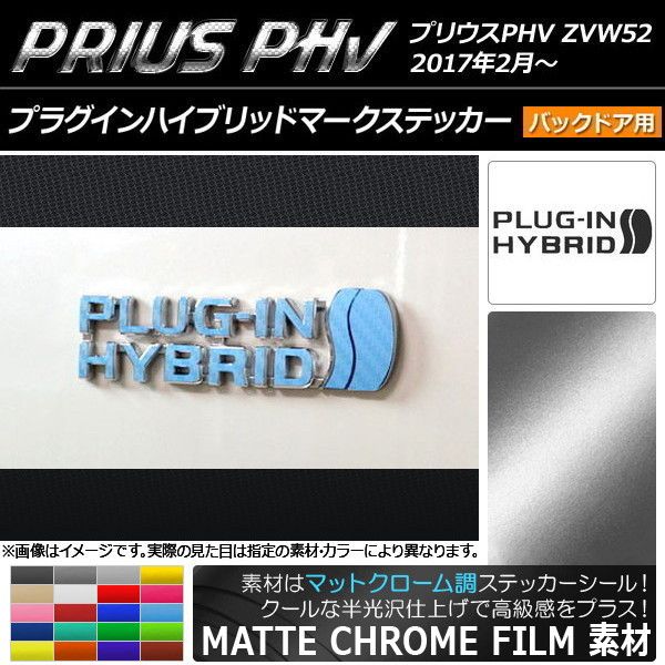 プラグインハイブリッドマークステッカー マットクローム調 バックドア用 プリウスPHV ZVW52 2017年2月〜 選べる20カラー AP-MTCR1367