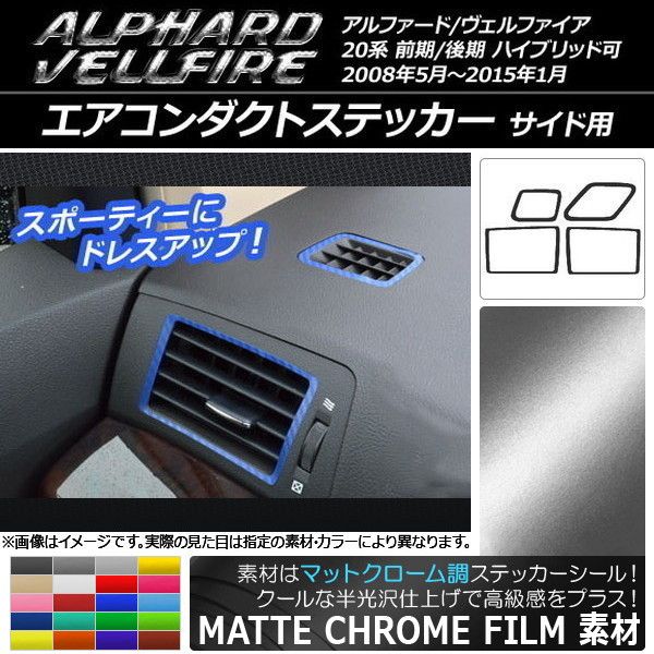 エアコンダクトステッカー マットクローム調 サイド用 トヨタ アルファード/ヴェルファイア 20系 前期/後期 選べる20カラー 入数:1セット(4枚) AP-MTCR695