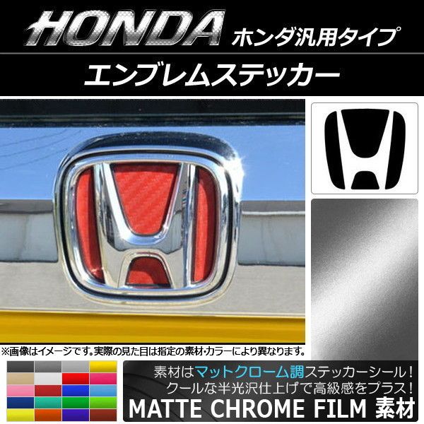 エンブレムステッカー マットクローム調 ホンダ汎用タイプ フロント/リアどちらかに使用可能!(画像でサイズをご確認下さい) 選べる20カラー AP-MTCR1833