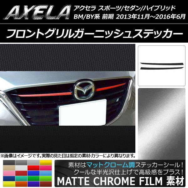 フロントグリルガーニッシュステッカー マットクローム調 マツダ アクセラ BM系/BY系 選べる20カラー 入数:1セット(2枚) AP-MTCR1425
