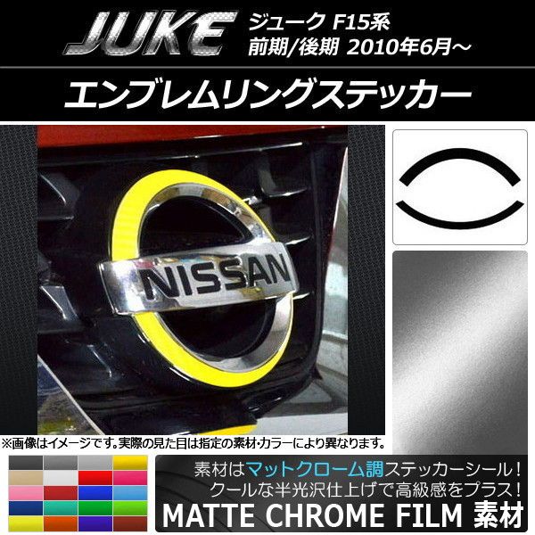 エンブレムリングステッカー マットクローム調 ニッサン ジューク F15系 前期/後期 選べる20カラー 入数:1セット(2枚) AP-MTCR1902