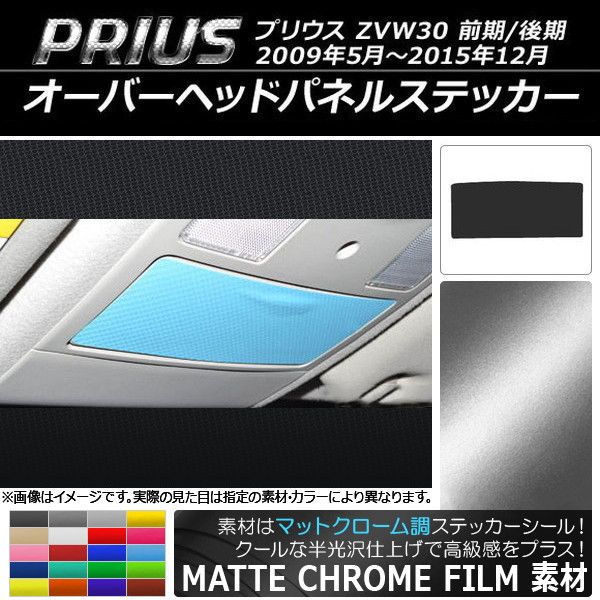 オーバーヘッドパネルステッカー マットクローム調 トヨタ プリウス ZVW30 前期/後期 2009年05月〜2015年12月 選べる20カラー AP-MTCR191