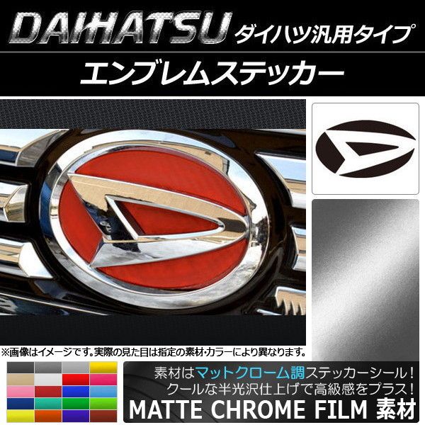エンブレムステッカー マットクローム調 ダイハツ汎用タイプ フロント/リアどちらかに使用可能!(画像でサイズをご確認下さい) 選べる20カラー AP-MTCR1919 カラー: ブラック ホワイト レッド ブルー イエロー グリーン オレンジ パープル ピンク ネイビー ブラウン ボルドー ゴールド シルバー ガンメタリック マゼンタ ライトグリーン ライトブルー ライトゴールド シアン