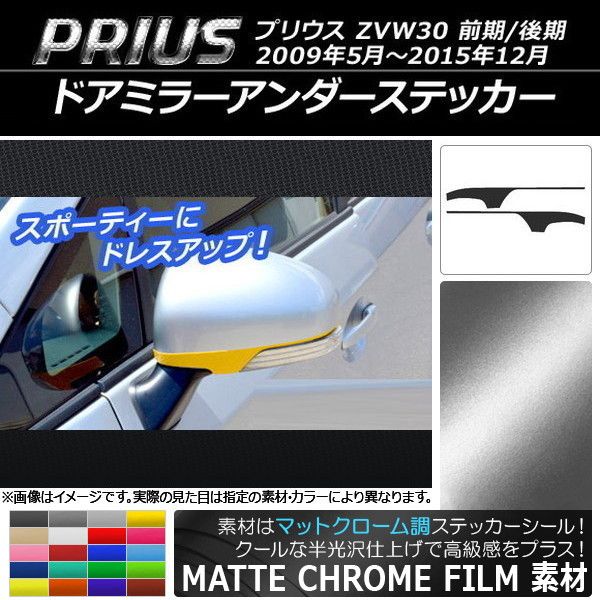 ドアミラーアンダーステッカー マットクローム調 トヨタ プリウス ZVW30 前期/後期 2009年05月〜2015年12月 選べる20カラー 入数:1セット(2枚) AP-MTCR157