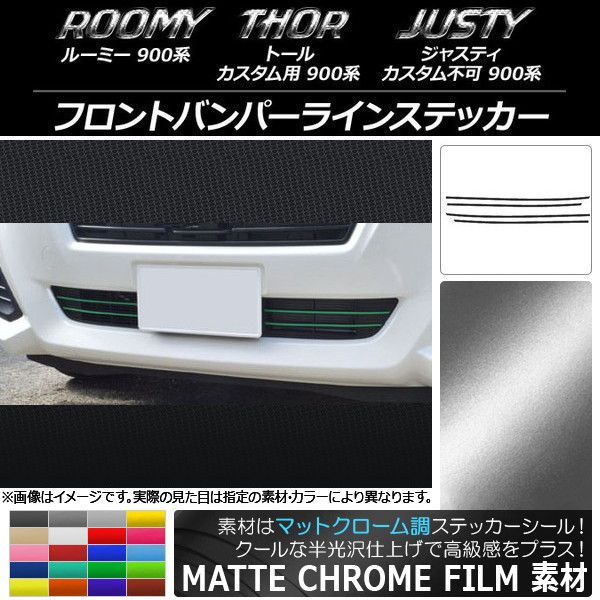 フロントバンパーラインステッカー マットクローム調 ルーミー,トール,ジャスティ M900/M910 選べる20カラー 入数:1セット(4枚) AP-MTCR1158
