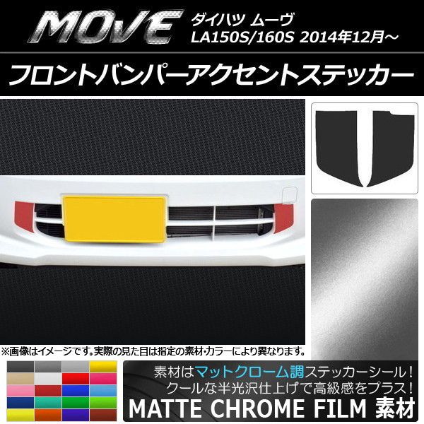 フロントバンパーアクセントステッカー マットクローム調 ダイハツ ムーヴ LA150S/LA160S 2014年12月〜 選べる20カラー 入数:1セット(2枚) AP-MTCR1205 カラー: ブラック ホワイト レッド ブルー イエロー グリーン オレンジ パープル ピンク ネイビー ブラウン ボルドー ゴールド シルバー ガンメタリック マゼンタ ライトグリーン ライトブルー ライトゴールド シアン