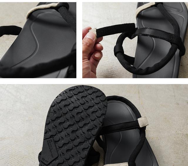 血行促進の機能はそのままにrig史上最薄なソールは、携帯性に特化しているので重ねても非常に薄く、バックパックのサイドやバッグのポケットに入れてもかさばりません。また足裏の保護や、登山時のためのグリップ力を高めるためアウトソールの全面に軽量ラバーを採用。硬質サンダルと比較すると膝腰などへの衝撃は約20%軽減。rigオリジナルのフットベット形状によりふくらはぎの血流量を1.5倍〜2倍増幅して回復を促します。