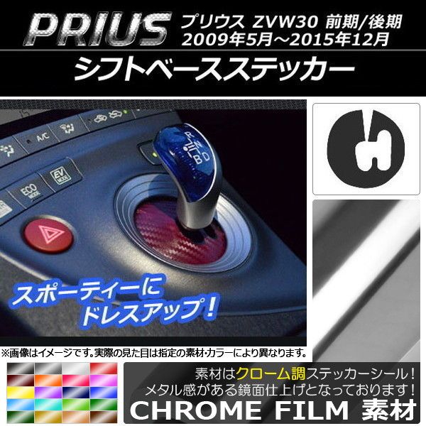 シフトベースステッカー クローム調 トヨタ プリウス ZVW30 前期/後期 2009年05月〜2015年12月 選べる20カラー AP-CRM171