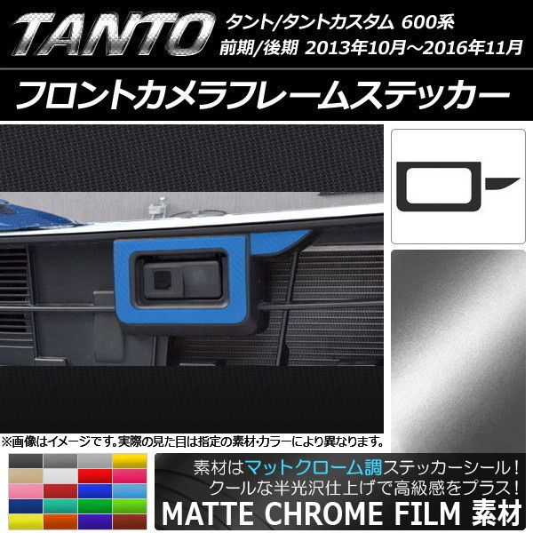 フロントカメラフレームステッカー マットクローム調 ダイハツ タント/カスタム LA600S/LA610S 2013年10月〜 選べる20カラー AP-MTCR915