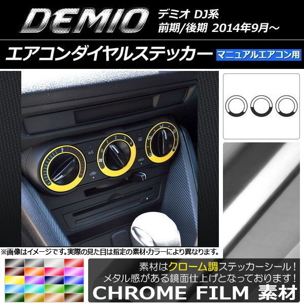 エアコンダイヤルステッカー クローム調 マツダ デミオ DJ系 前期/後期 MTエアコン用 選べる20カラー 入数:1セット(3枚) AP-CRM1347