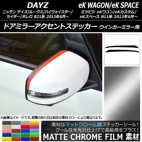 ドアミラーアクセントステッカー マットクローム調 デイズ/デイズルークス/eKワゴン/eKカスタム/eKスペース 選べる20カラー 入数:1セット(2枚) AP-MTCR3603