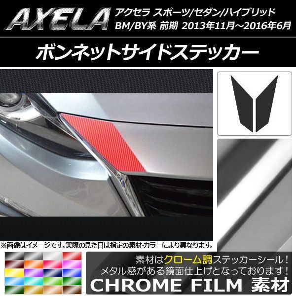 ボンネットサイドステッカー クローム調 マツダ アクセラ スポーツ/セダン/ハイブリッド BM系/BY系 前期 選べる20カラー 入数:1セット(2枚) AP-CRM1470
