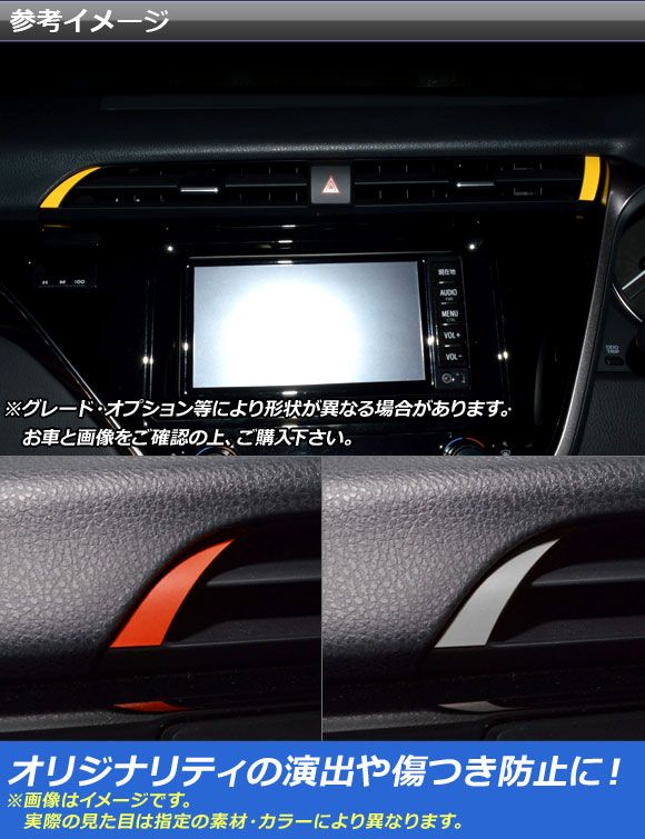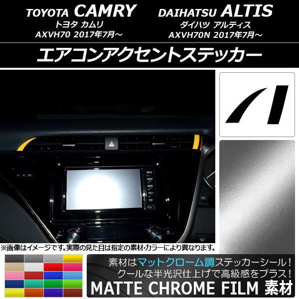 エアコンアクセントステッカー マットクローム調 トヨタ/ダイハツ カムリ/アルティス XV70系 2017年07月〜 選べる20カラー 入数:1セット(2枚) AP-MTCR3161 カラー: ブラック ホワイト レッド ブルー イエロー グリーン オレンジ パープル ピンク ネイビー ブラウン ボルドー ゴールド シルバー ガンメタリック マゼンタ ライトグリーン ライトブルー ライトゴールド シアン