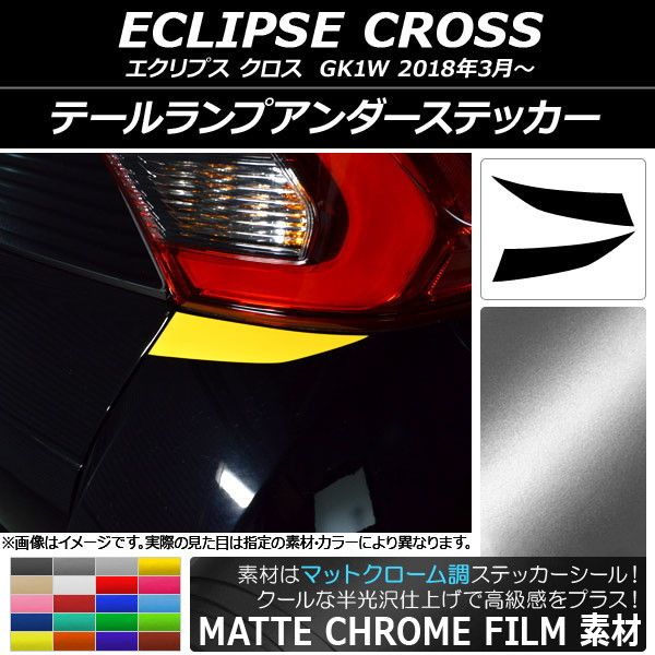 テールランプアンダーステッカー マットクローム調 ミツビシ エクリプス クロス GK1W 2018年03月〜 選べる20カラー 入数:1セット(2枚) AP-MTCR3788 カラー: ブラック ホワイト レッド ブルー イエロー グリーン オレンジ パープル ピンク ネイビー ブラウン ボルドー ゴールド シルバー ガンメタリック マゼンタ ライトグリーン ライトブルー ライトゴールド シアン
