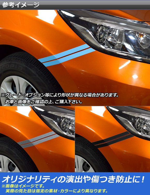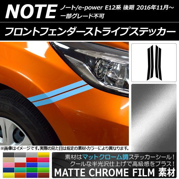 フロントフェンダーストライプステッカー マットクローム調 ニッサン ノート/ノートe-power E12系 選べる20カラー 入数:1セット(4枚) AP-MTCR3261