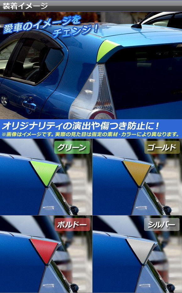 リアウイングステッカー クローム調 トヨタ アクア NHP10 前期/中期 2011年12月〜2017年05月 選べる20カラー 入数:1セット(左右) AP-CRM114 カラー: ブラック ホワイト レッド ブルー イエロー グリーン オレンジ パープル ピンク ネイビー ブラウン ボルドー ゴールド シルバー マゼンタ ダークグリーン ライトグリーン ライトブルー ローズゴールド シアン