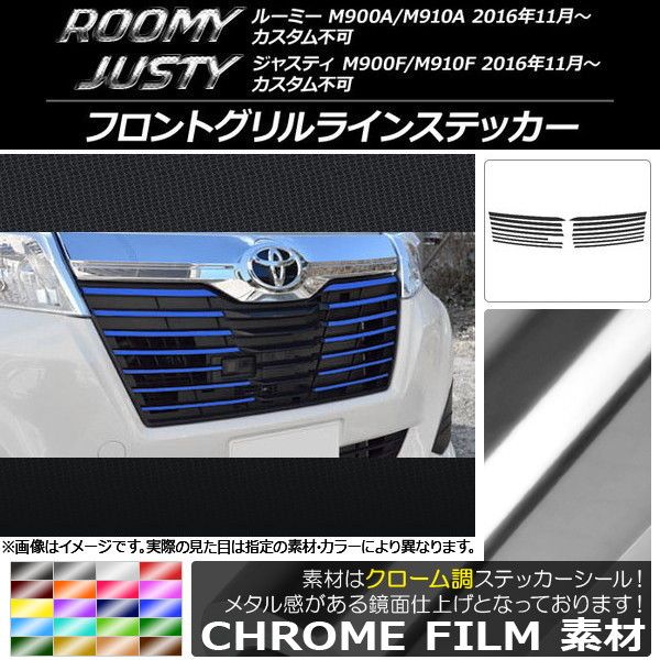フロントグリルラインステッカー クローム調 ルーミー,ジャスティ カスタム不可 M900/M910 選べる20カラー 入数:1セット(14枚) AP-CRM1159