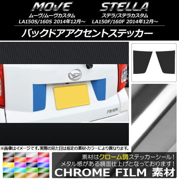 バックドアアクセントステッカー クローム調 ムーヴ/カスタム,ステラ/カスタム LA150/LA160 選べる20カラー 入数:1セット(2枚) AP-CRM1192
