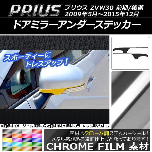 ドアミラーアンダーステッカー クローム調 トヨタ プリウス ZVW30 前期/後期 2009年05月〜2015年12月 選べる20カラー 入数:1セット(2枚) AP-CRM157