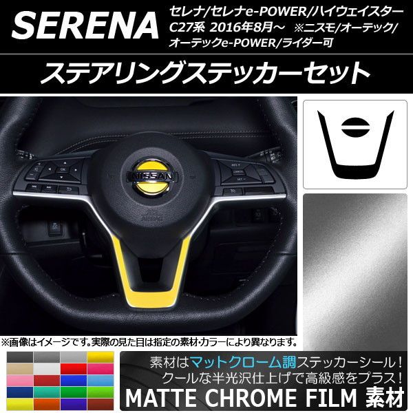 ステアリングステッカーセット マットクローム調 ニッサン セレナ/e-POWER/ハイウェイスター C27系 2016年08月〜 選べる20カラー AP-MTCR3844
