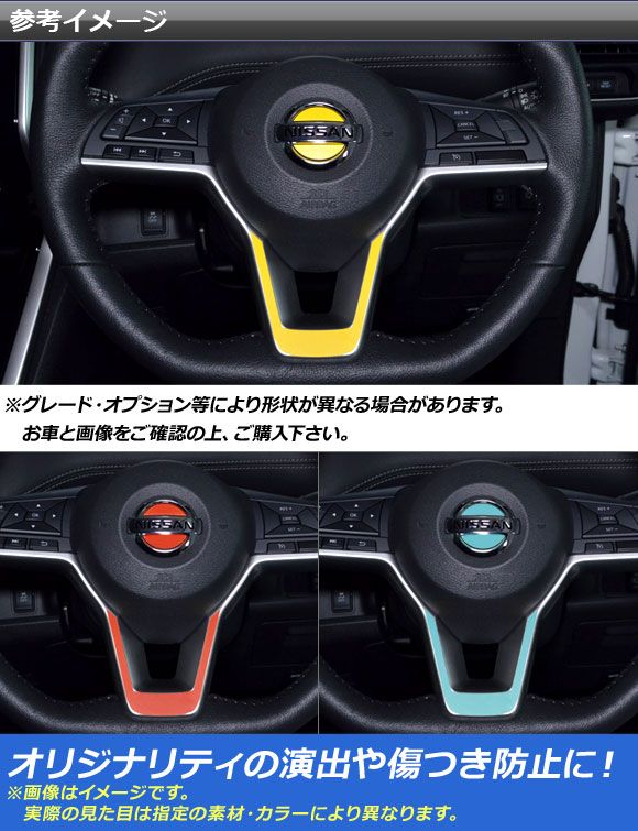 ステアリングステッカーセット マットクローム調 ニッサン セレナ/e-POWER/ハイウェイスター C27系 2016年08月〜 選べる20カラー AP-MTCR3844 カラー: ブラック ホワイト レッド ブルー イエロー グリーン オレンジ パープル ピンク ネイビー ブラウン ボルドー ゴールド シルバー ガンメタリック マゼンタ ライトグリーン ライトブルー ライトゴールド シアン