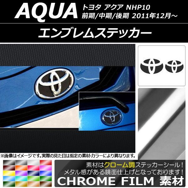 エンブレムステッカー クローム調 フロント・リアセット トヨタ アクア NHP10 前期/中期/後期 2011年12月〜 選べる20カラー AP-CRM127