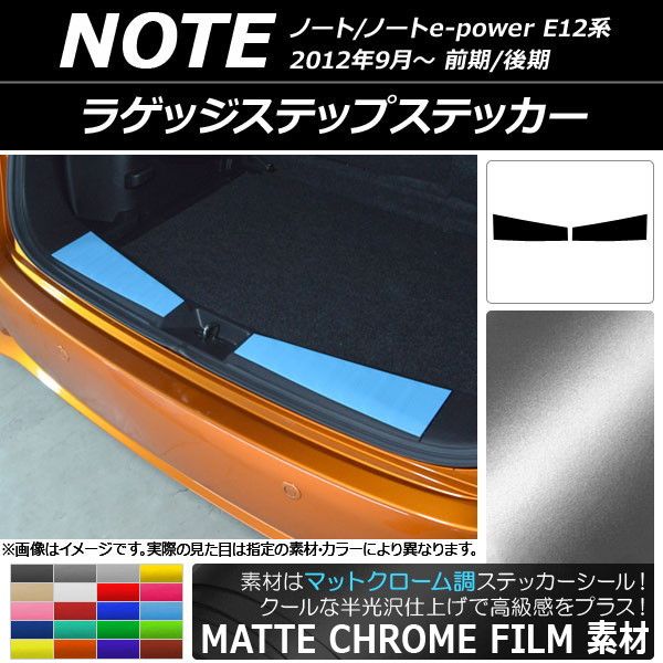 ラゲッジステップステッカー マットクローム調 ニッサン ノート/ノートe-power E12系 選べる20カラー 入数:1セット(2枚) AP-MTCR3355