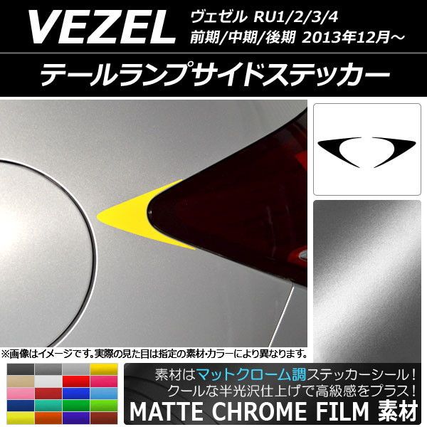 テールランプサイドステッカー マットクローム調 ホンダ ヴェゼル RU1/2/3/4 前期/中期/後期 2013年12月〜 選べる20カラー 入数:1セット(2枚) AP-MTCR3436