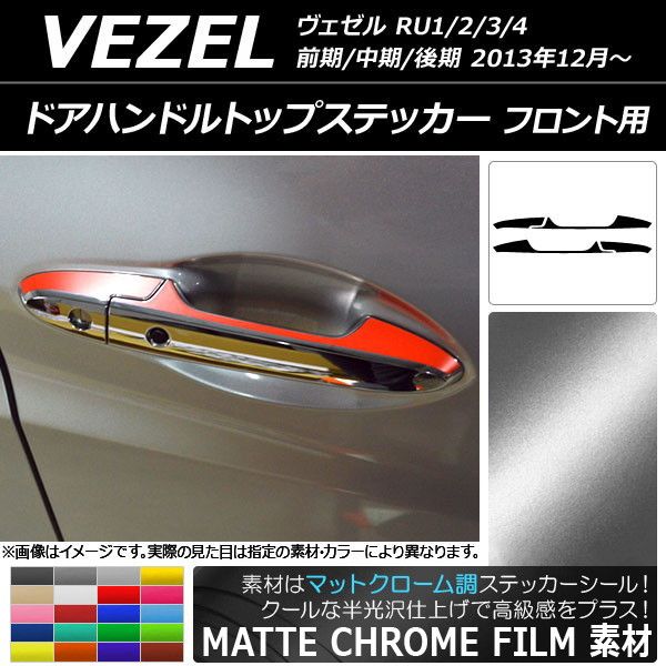 ドアハンドルトップステッカー マットクローム調 ホンダ/本田/HONDA ヴェゼル RU1/2/3/4 選べる20カラー AP-MTCR3492