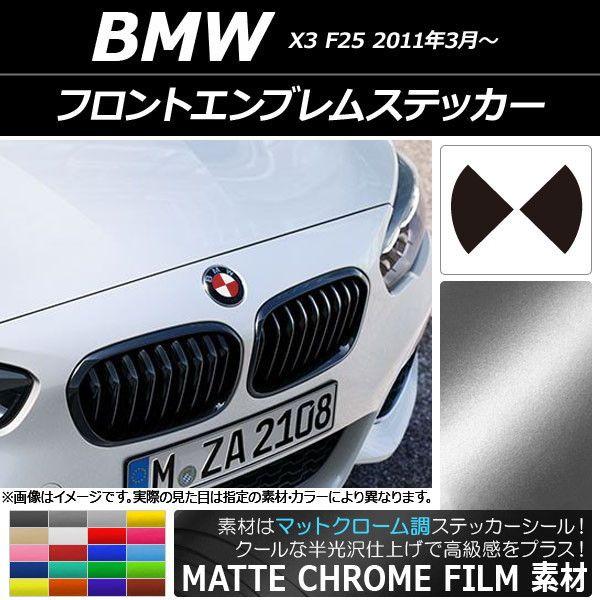 フロントエンブレムステッカー マットクローム調 BMW X3 F25 2011年03年〜 選べる20カラー AP-MTCR2682